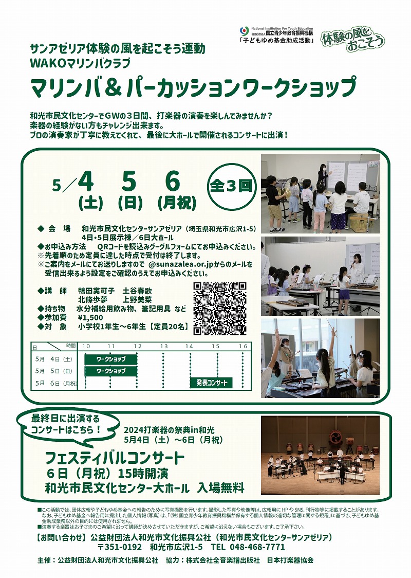 2024年5月4日(土)~6(月) 打楽器ワークショップ開催 サンアゼリアホール