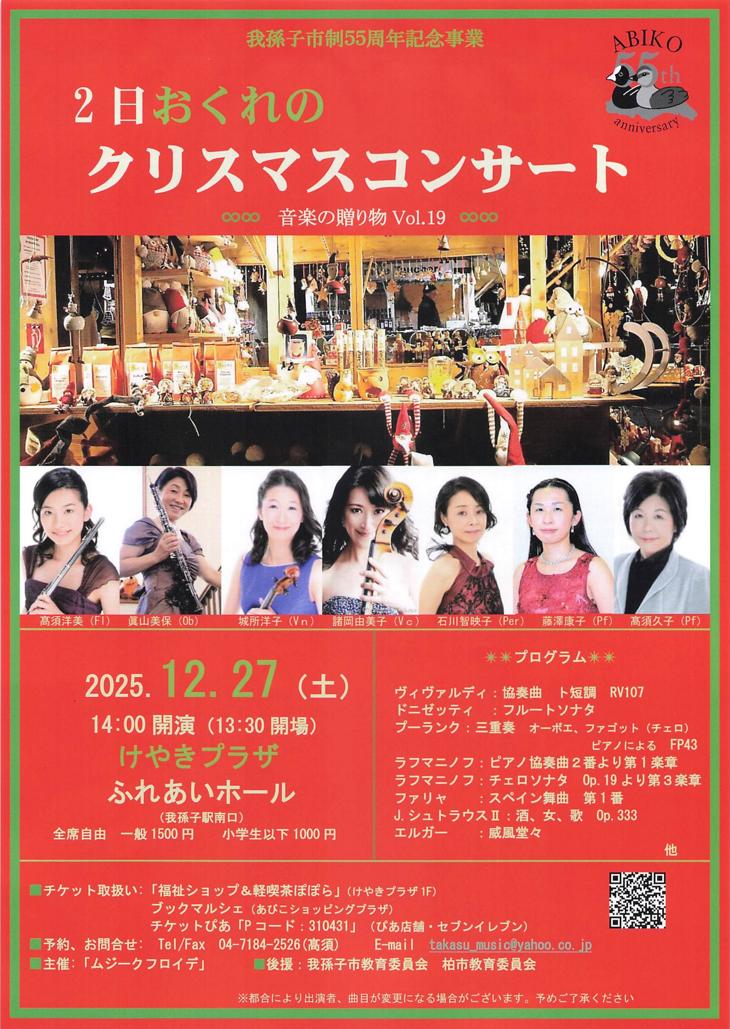 2025年12月27日(土) 2日遅れのクリスマスコンサート(千葉県我孫子)